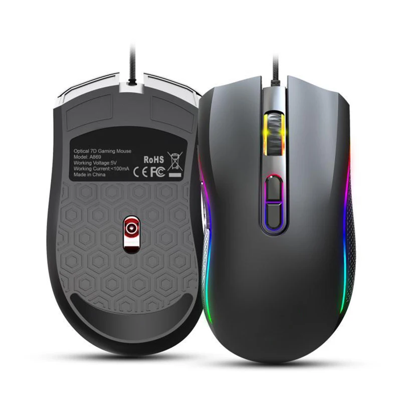 6 Adjustable Wired Mouse DPI 7 Key Macro Programming RGB Light Office PC Game Mice SGA998