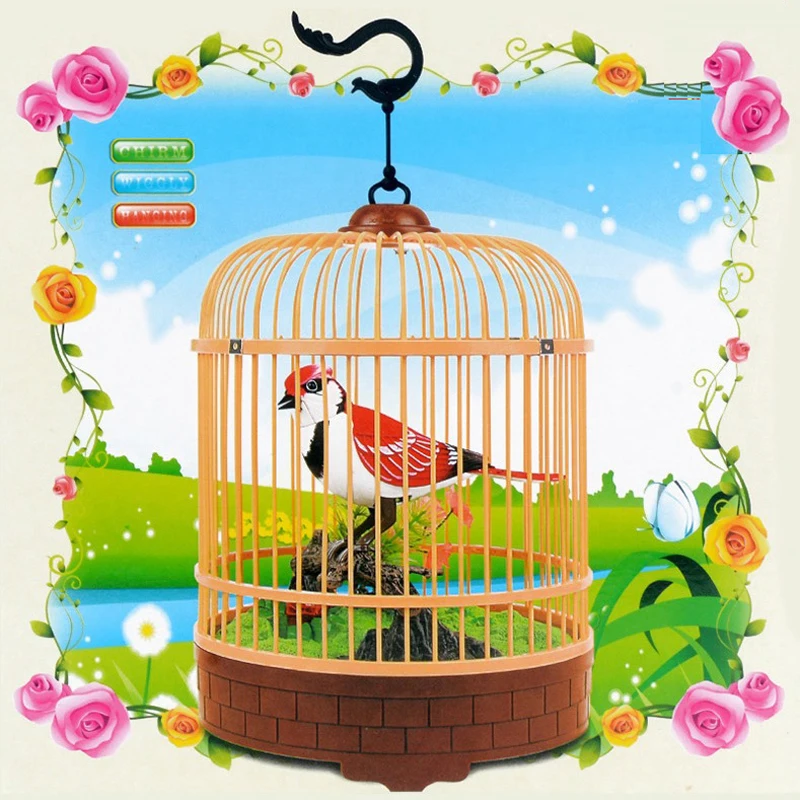 Electric voice control bird simulation bird cage toy cute birdcall toy electronic pets bird novelty